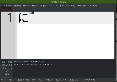 Raspbian stretch にテキストエディタGeanyをインストールしたがテキスト変換中の表示がおかしい