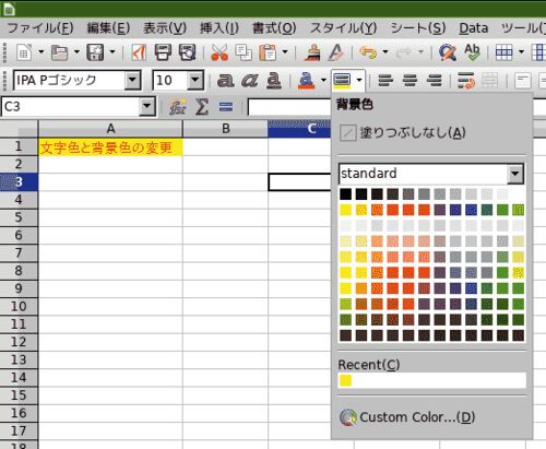 Calc 文字色と背景色の変更